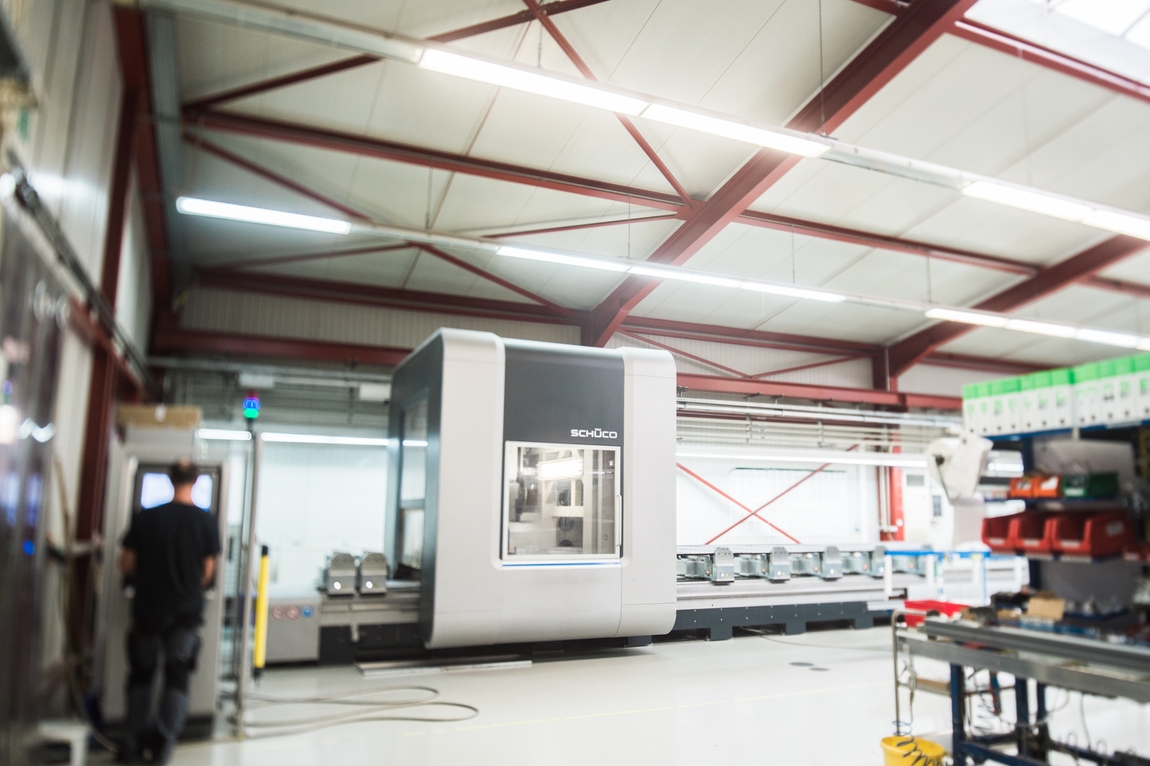 Mit diesem automatisierten 5-Achsen CNC Bearbeitungssystem können die entwickelten Konstruktionen direkt präzise bis zu einer Profillänge von 7,6m gefertigt werden.